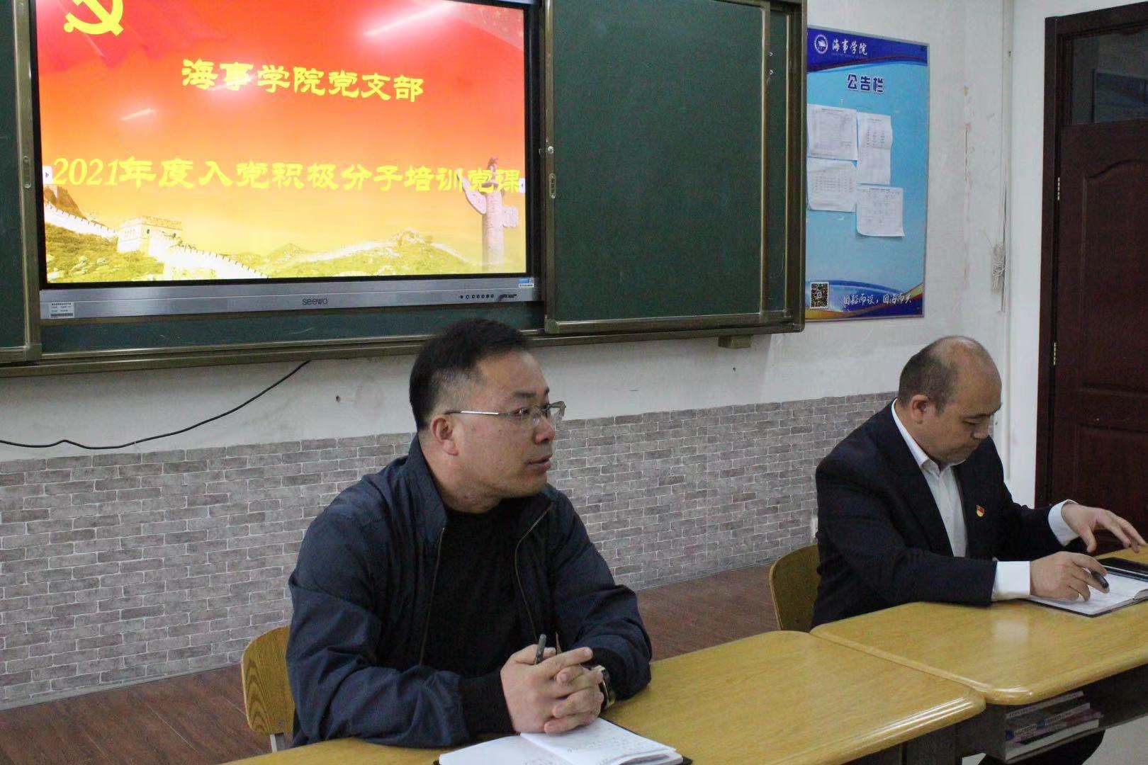 5月8日下午,海事学院党支部在B1-310举行学生入党积极分子培训党课,党支部副书记刘子高,组织委员陈兰树,全体入党积极分子参加党课。