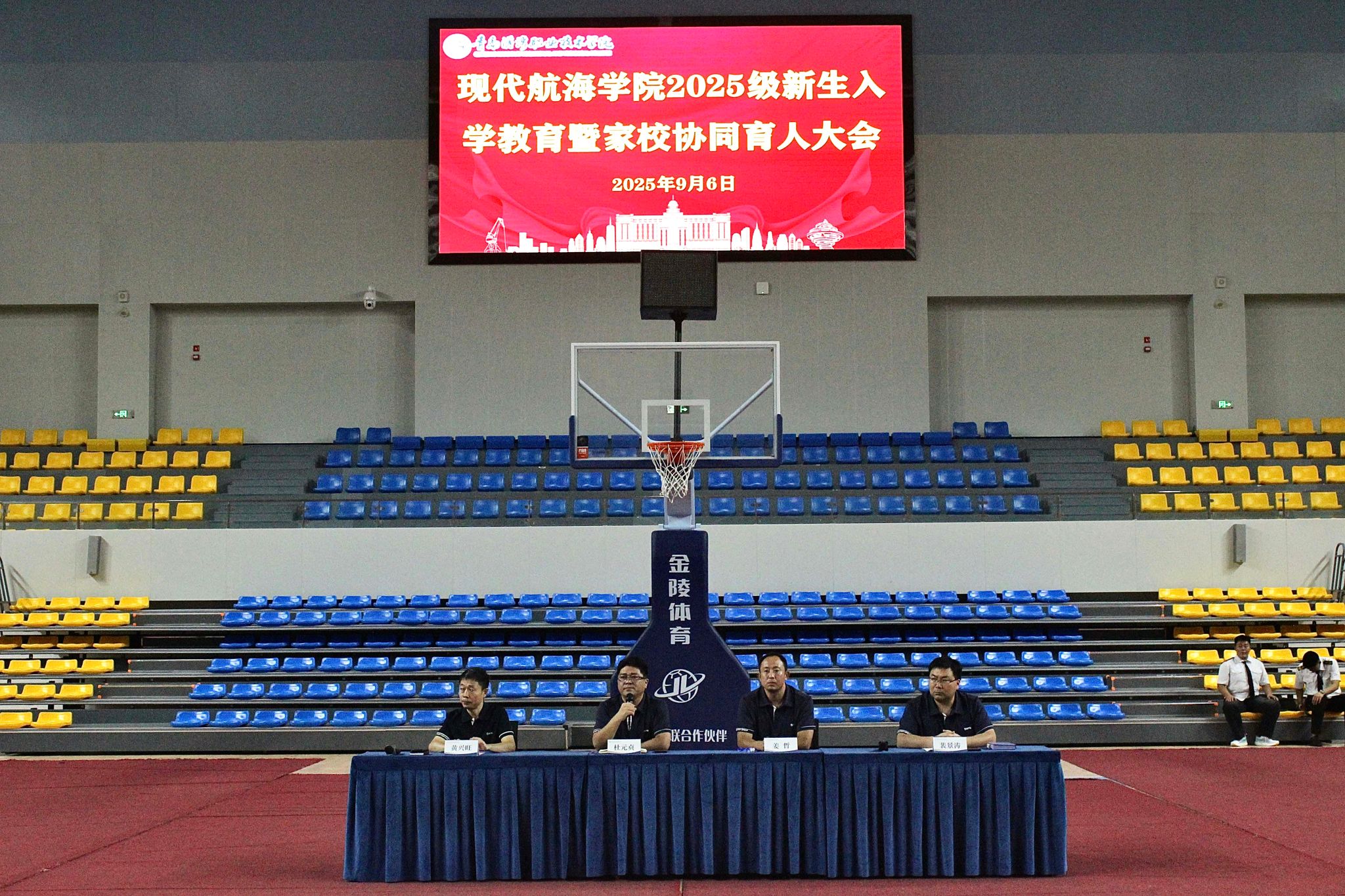 9月6日,现代航海学院2025级新生入学教育暨家校协同育人大会在校文体中心隆重举办。现代航海学院领导班子成员,2025级新生辅导员,全体2025级新生及新生家长共同参加大会。会议由现代航海学院副院长黄兴旺主持。