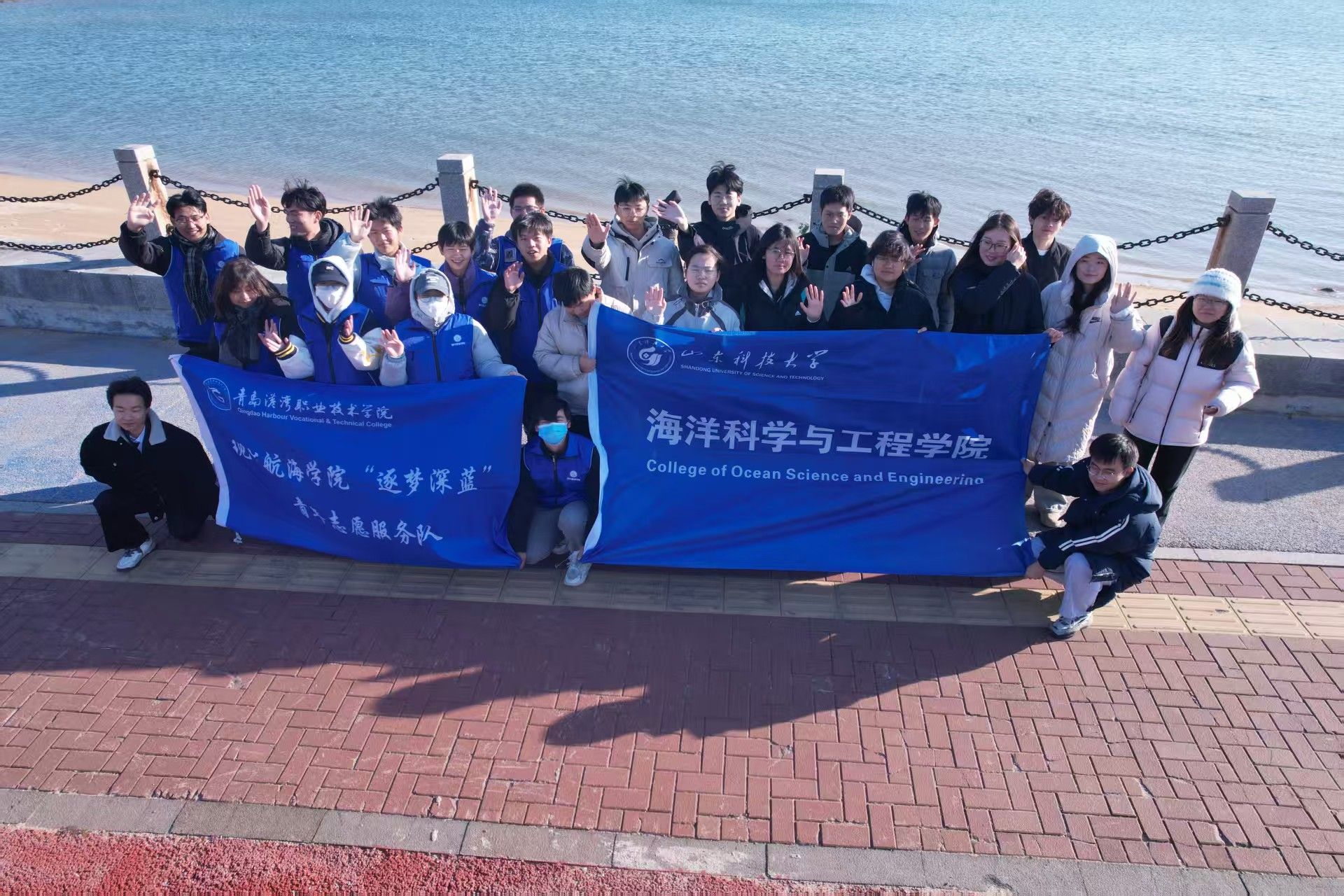 11月18日,青岛港湾职业技术学院“逐梦深蓝”青年志愿服务队与山东科技大学海洋科学与工程学院共同前往珊瑚贝桥海滩开展“双校同心 守护蔚蓝”主题活动。志愿者们秉持“以德立身 自强不息”的理念,以专业素养践行环保使命,清理海岸垃圾,用青春行动筑牢蔚蓝屏障,让校际同心的环保力量在海岸绽放光彩。